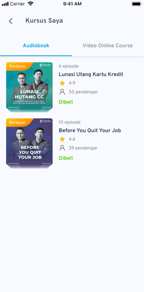 3. Anda akan masuk ke halaman baru, di mana Anda bisa mengakses Audiobook dan video Online Course yang sudah dibeli sebelumnya.