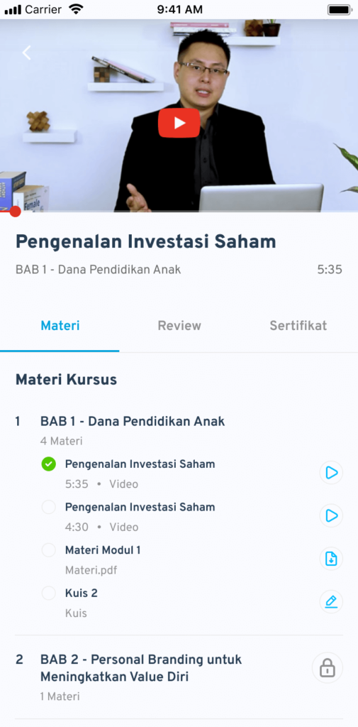 6. Selanjutnya, Anda akan masuk ke halaman berisi video dan daftar materi yang disampaikan dalam video tersebut.