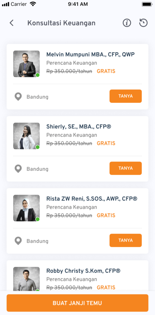 2. Anda bisa memilih satu dari 10 perencana keuangan tersertifikasi yang siap mendengarkan keluhan Anda.