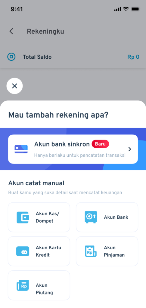 Berikut adalah cara menambahkan rekening ke Aplikasi Finansialku: