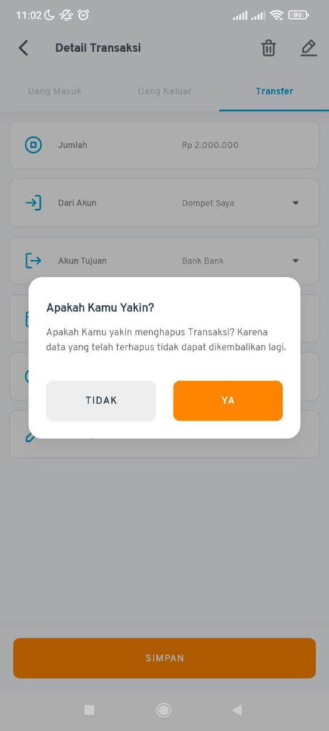 1. Lihat transaksi yang sudah tercatat di menu utama.