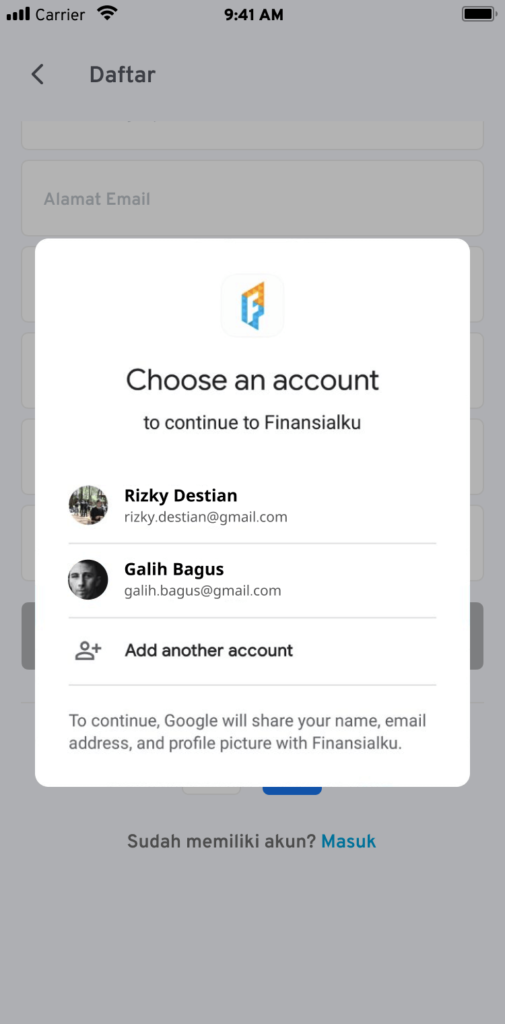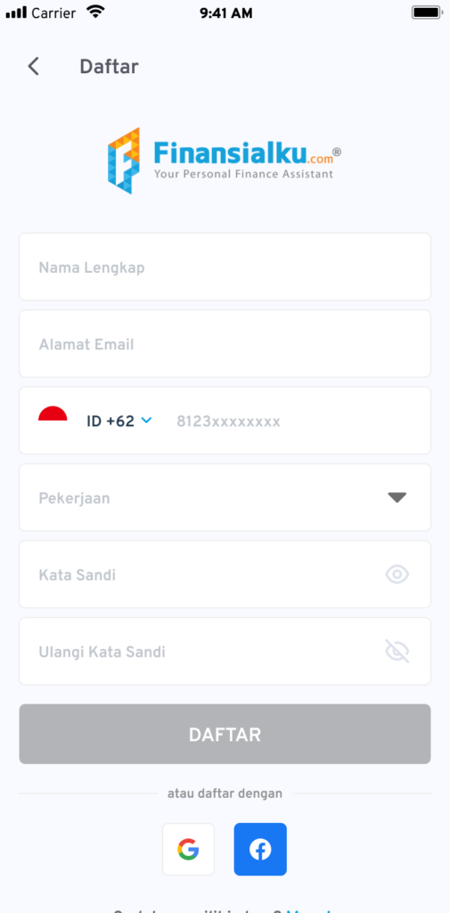 3. Setelah itu, Anda akan secara otomatis masuk ke aplikasi Finansialku tanpa perlu registrasi lagi.