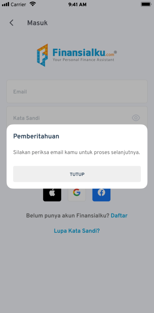 Lakukan langkah ini untuk membuat ulang kata sandi akun Finansialku Anda: