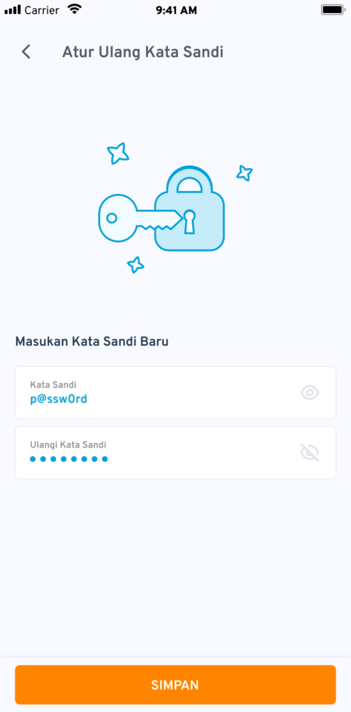 2. Masukkan kata sandi baru di kolom yang sudah disediakan sebanyak dua kali.