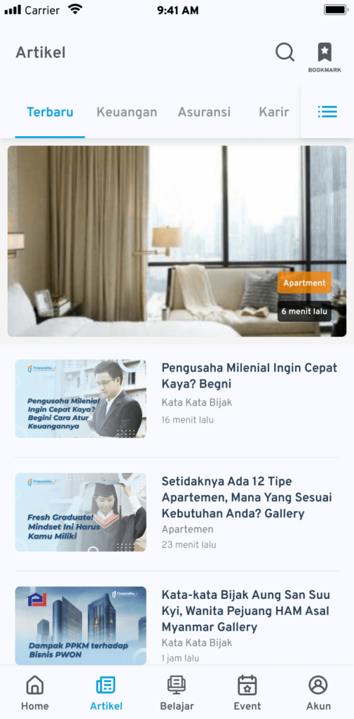 1. Pilih kategori ‘Artikel’ di toolbar Aplikasi Finansialku
