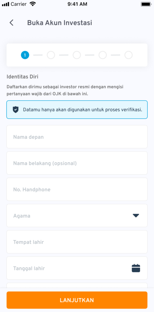 Untuk mendaftarkan diri, Anda bisa menekan tombol ‘DAFTAR AKUN INVESTASI SEKARANG’ Ada beberapa kolom atau formulir yang harus Anda isi. Berikut adalah penjelasannya: