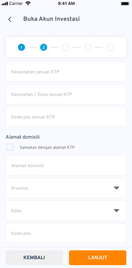 2. Di halaman kedua, Anda diharuskan untuk mengisi tempat tinggal sesuai dengan kartu identitas yang berlaku.