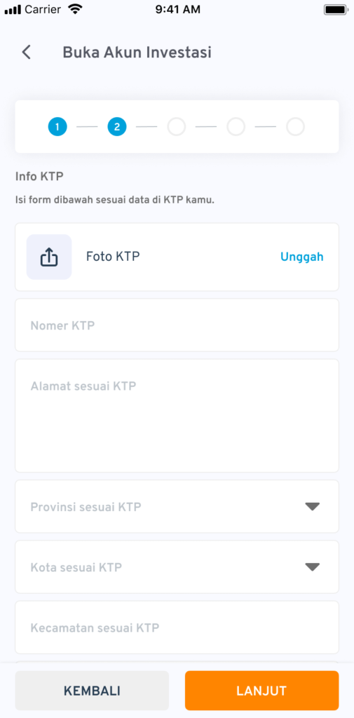 - Kecamatan sesuai KTP: Nama kecamatan yang sesuai dengan kartu identitas yang berlaku.