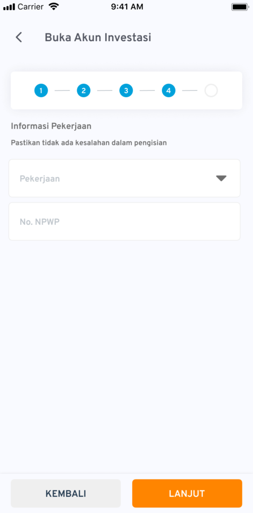 4. Di halaman keempat, Anda diharuskan untuk mengisi data terkait pekerjaan Anda saat ini.