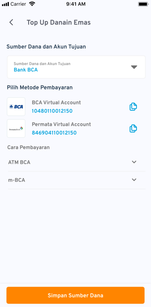 4. Pilih sumber dana dan akun tujuan yang akan diisi saldo.