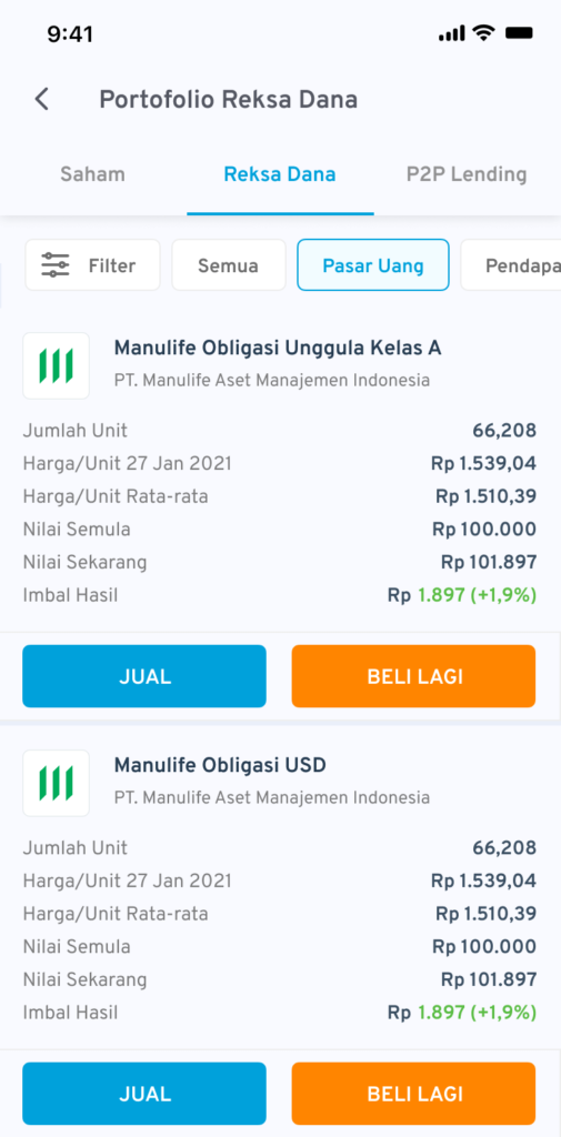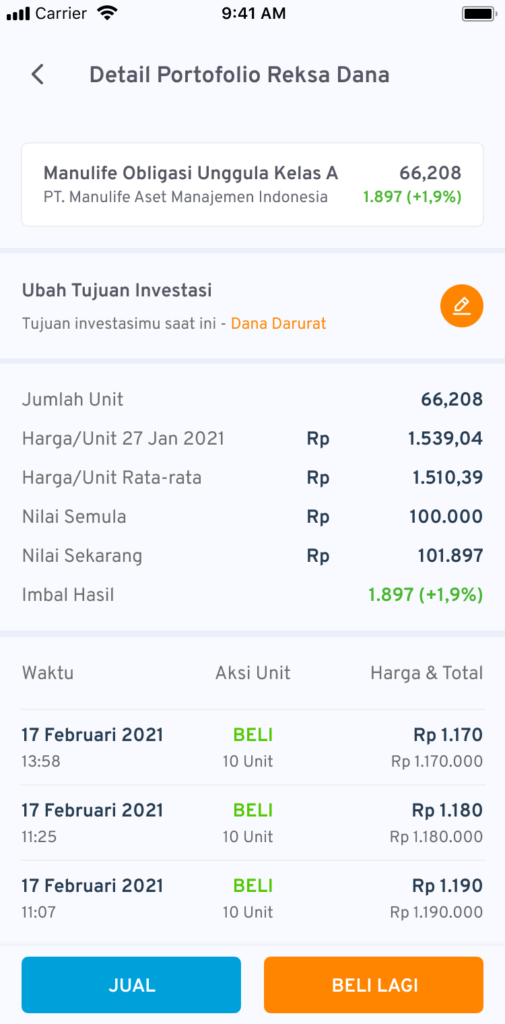 3. Setelah itu, Anda akan masuk ke halaman baru, berisi portofolio reksa dana Anda, seperti gambar di bawah ini.