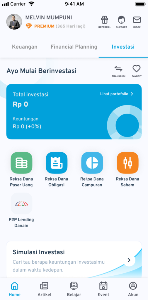 1. Tekan ‘Simulasi Investasi’ yang ada di menu Investasi.
