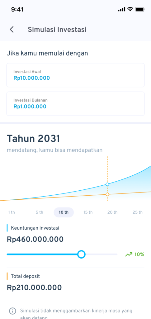 - Investasi Bulanan: Jumlah atau besaran dana yang akan diinvestasikan setiap bulannya.